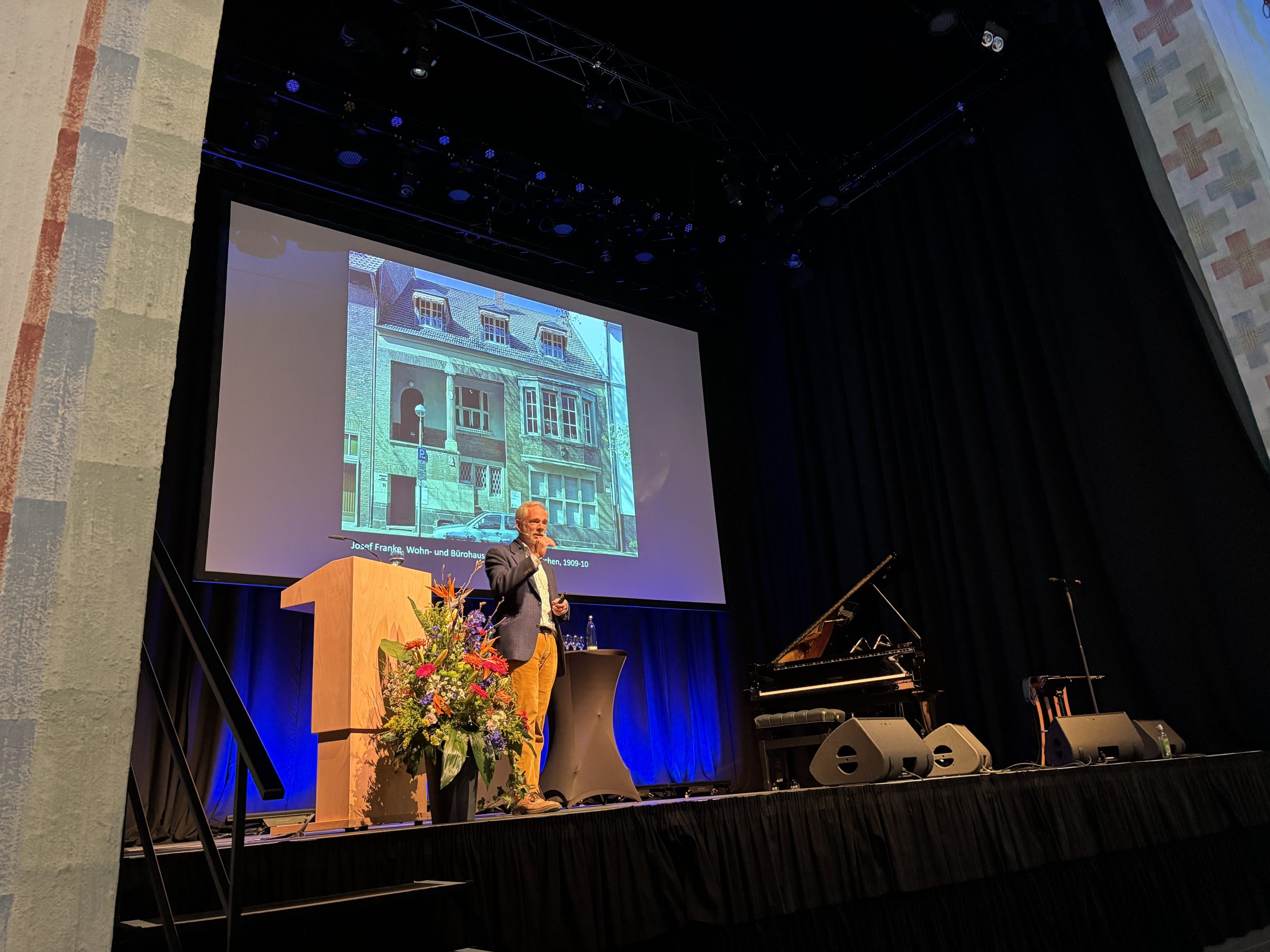 Der Architekturhistoriker Prof. Dr. Wolfgang Sonne beschrieb Franke in seinem Vortrag als Großstadtarchitekten, der die Herausforderungen seiner Zeit annahm und moderne Bauaufgaben meisterte: Neben Kirchen entwarf er Wohnhäuser, Verwaltungs- und Geschäftshäuser sowie Schulen.